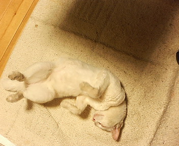(ここで寝るので、色が)