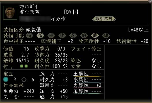 器用はカブキの毎日装備のままだったので、いくつだろ…。